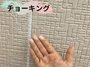 チョーキング現象が起きていますね…。外壁の塗膜が劣化し、紫外線や雨などの劣化要因からのダメージを受けやすくなっています。